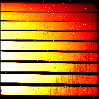 This is the raw file monitor with screenshots of raw calibration data. There is one page per raw data type. All files taken in the same template are displayed in the same row. The number of displayed files per template is limited depending on raw type and instrument. Files which are not displayed have a placeholder ("n/c", i.e. "not configured"). Files that could not be downloaded from the archive are marked as "not yet available". Use the 'jump' button to jump to a specific set of raw displays, labelled by their AB name. Click on the thumbnails to get a larger display together with histograms and cuts. Find more information in the help. Special information for CRIRES raw files: