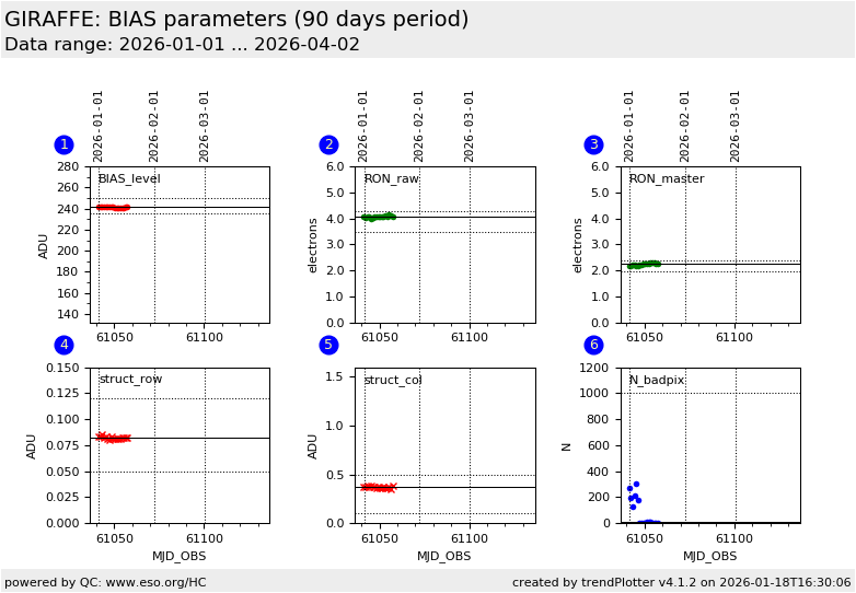 This is the trending plot for the GIRAFFE QC parameters derived from BIAS frames.