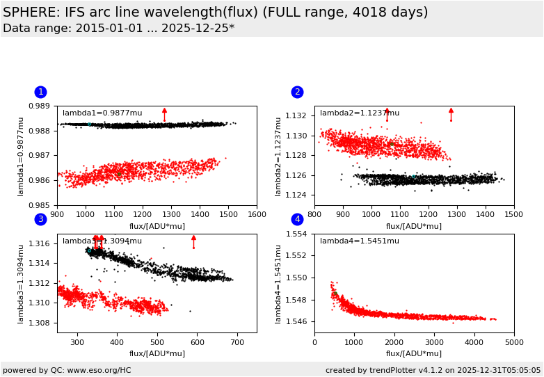 | PRISM=YJ, wavelength of 0.9877 arc line as a function of flux |
