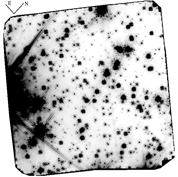 Target: Bulge field: RA= 18:11:04.5,  DEC = -31:45:49 [NIC2 image, 22x22", J-band ][I-band WFI image]