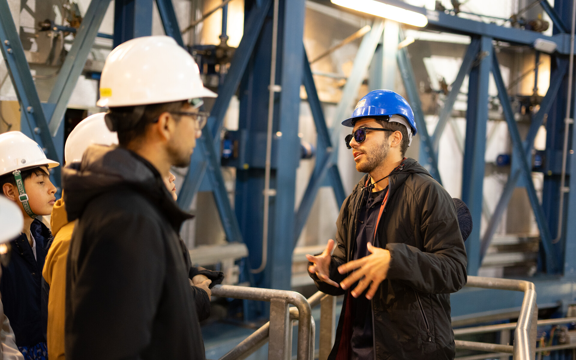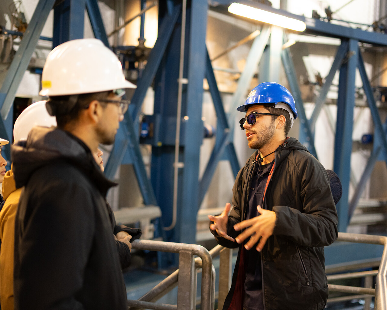 Guía explica a visitantes aspectos sobre el Very Large Telescope dentro de una de la Unidades de Telescopio (UT).
