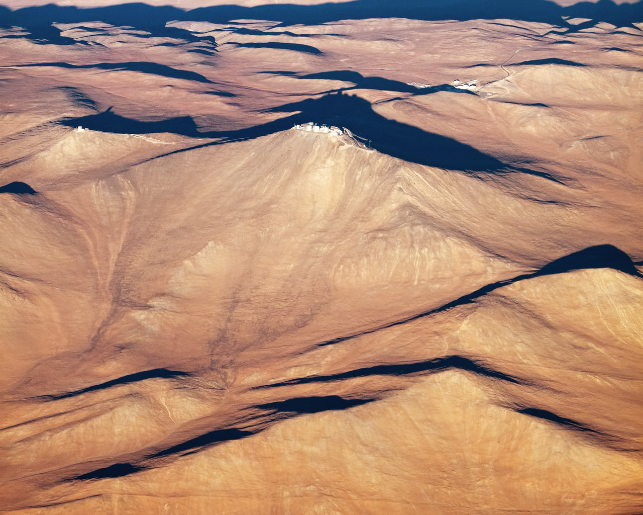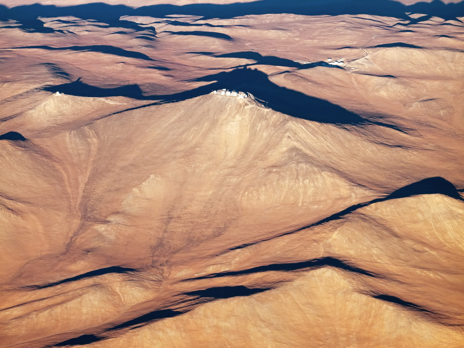 This stunning aerial image shows the hills and mountains surrounding ESO’s Paranal Observatory in Chile. From above, the sharp, rocky details of the arid landscape melt away, giving way to textures more akin to softly rippling fabric.