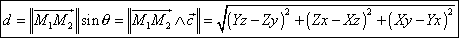 It is easy to check that this difference is equal to D 2 - D 1 when the four points are coplanar i.e. when V 1 , V 2 and C are in line.
