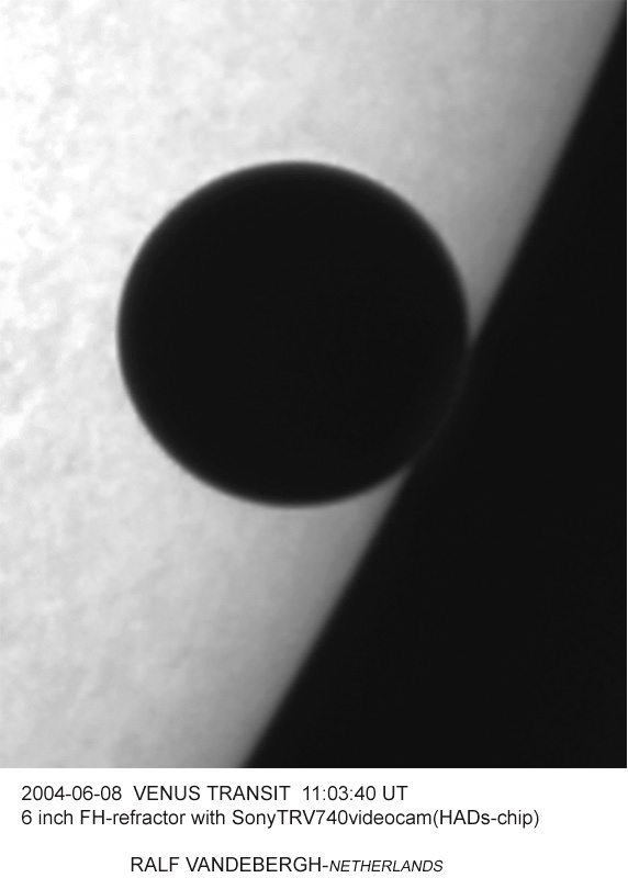 Ralf Vandebergh 6-inch refractor f/8 Sony TRV740 camcorder June 8, 2004, 11:03:40 UT The Netherlands |