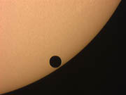 Paolo R. Lazzarotti Astrophysics AP130 f/6 telescope with 2x Barlow APO BW sensor Vesta PRO [Composite of 250 frames] More images at this site June 5, 2004, 13:33 UT Massa, Italy | Venus Before the Transit [578 x 358 pix - 74k]
