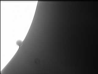 Robert Stekelenburg 140/2000mm Orion Optics Maksutov OMC140 Philips ToUCam 740k [Composite of 100 frames from 10sec video; processed with Astrostack] June 8, 2004, 10:35 UT Enschede, The Netherlands | Venus with Atmospheric Ring at Third Contact [320 x 240 - 4k ]