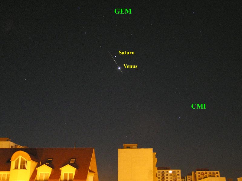 | Conjunction of Venus and Jupiter [800 x 600 pix - 50k] | Conjunction of Venus and Jupiter (Close-Up) [800 x 528 pix - 46k] |