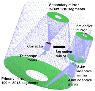 mirror), a 4.2-m focusing and a 2.35 flat, fast steering adaptive